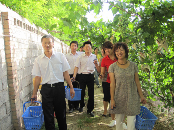 2009年金秋8月,公司销售部全员前往贺兰山下的玉泉营葡萄庄园,亲手入园采摘,体验采摘乐趣。玉泉营的葡萄色泽鲜艳、清爽可口,销售部的甜姐帅哥们各个面带笑容,满载而归。