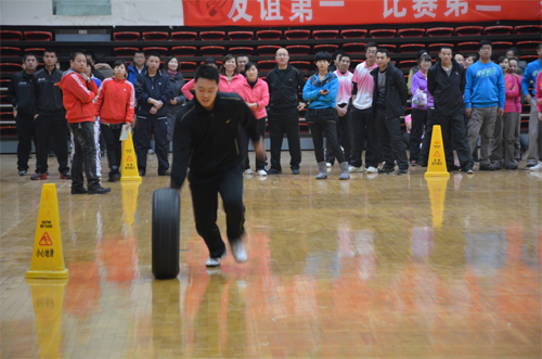 滚轮胎接力赛讲究速度和平衡感,参赛队员个个争先,以技巧和速度争取胜利。