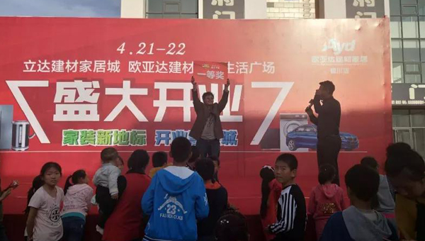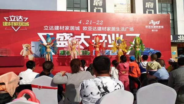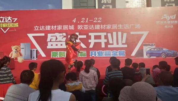 上午的开幕式结束后,为回馈新老客户,4月21日22日下午立达建材家居市场中央大道处举行丰富多彩的节目演出、建材家具展和力度空前的优惠让利及抽奖活动。