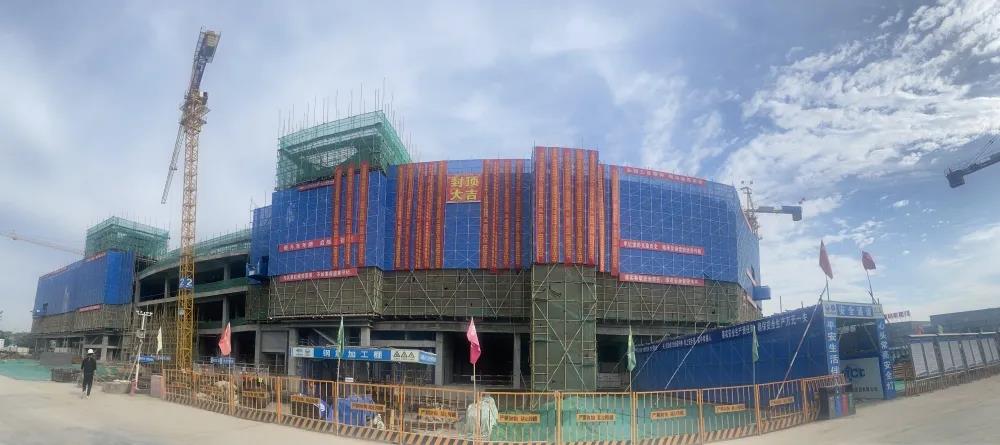 封顶仪式现场鞭炮齐鸣,喜封金顶 ,宏伟雏形初现