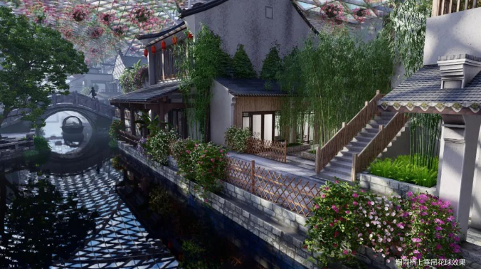 梦水乡文旅街区将通过灯光、置景、多媒体等各种渲染手法场景化环境,多维度多角度打造沉浸式体验空间,打造梦水乡文旅街区独特的江南韵味。
