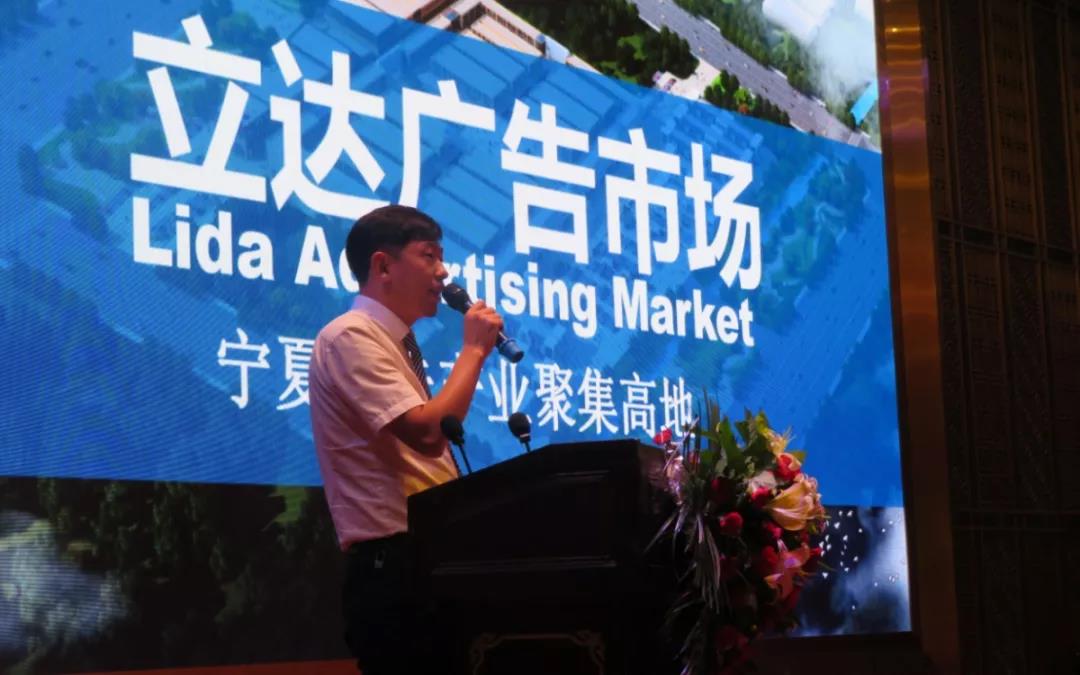 7月15日,立达广告市场开业筹备启动仪式暨商户签约大会在立达深航国际酒店举行,宁夏华尊立达房地产开发集团有限公司总经理张凯、宁夏华尊立达集团银川公司行政副总杨龙、宁夏华尊立达集团银川公司营销总监马龙、宁夏华尊立达集团银川营销中心项目经理张志飞、宁夏金天佑广告材料商行总经理刘平、宁夏世纪彩虹文化传媒有限公司总经理侯伟、宁夏金港广告标识总经理周圣飚、宁夏君意达广告有现公司总经理王晓明、宁夏喷印标识协会会长杨惠峰、宁夏喷印标识协会秘书长孙乾、宁夏天也广告材料商行总经理孙韬、宁夏金格彩大型喷绘总经理陈云刚、宁夏龙韵飞天广告标识总经理李开宏、宁夏金强巨彩电子科技有限公司总经理晋强等领导嘉宾及现场近200位银川广告行业同仁参加了此次会议。
