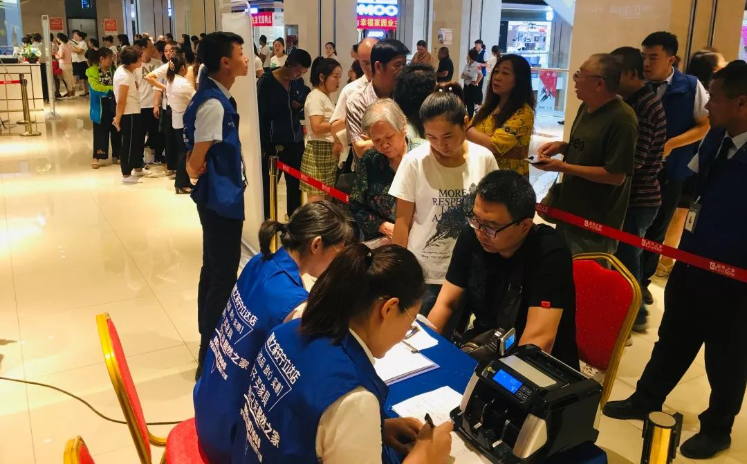顾客们领取签到礼,精彩好礼送不停!现场人山人海 人气爆棚