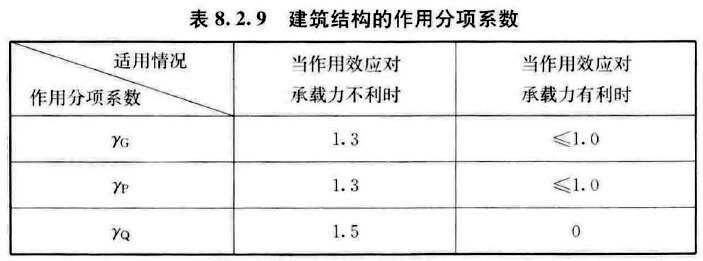 标准8.2.9 建筑结构的作用分项系数,应按表8.2.9采用。