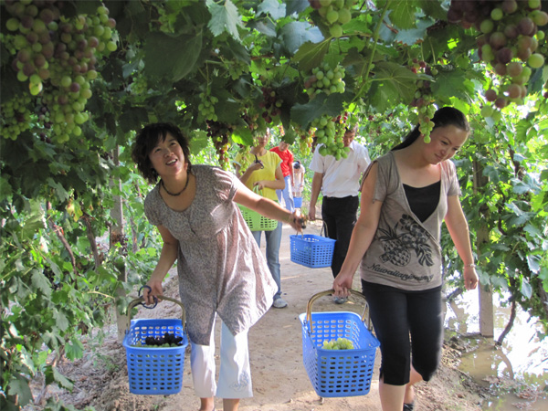 2009年金秋8月,公司销售部全员前往贺兰山下的玉泉营葡萄庄园,亲手入园采摘,体验采摘乐趣。玉泉营的葡萄色泽鲜艳、清爽可口,销售部的甜姐帅哥们各个面带笑容,满载而归。